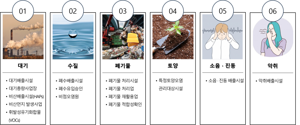 - 배출시설과 방지시설의 설치 및 운영이 법적 기준에의 부합여부, 무허가 배출 및 배출허용기준 초과 등으로 인한 행정 및 과태료 처분 등의 법적 리스크를 사전에 예방