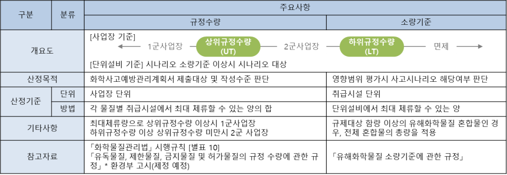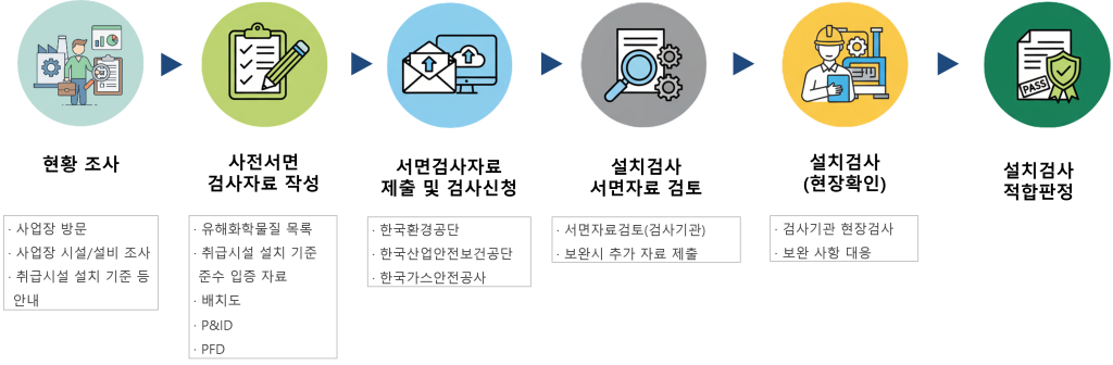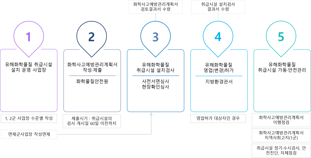 - 유해화학물질 취급시설의 안전성을 확보하고 사고 시 피해를 최소화 할 수 있도록 비상대응체계를 구축·운영하도록 하는 제도
